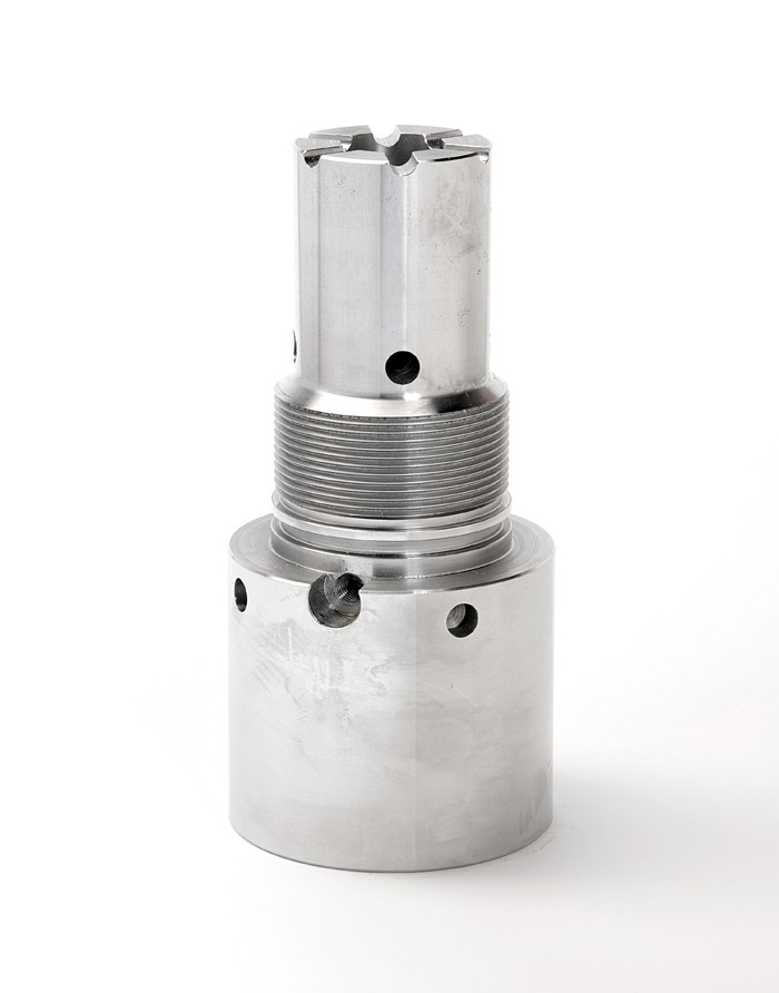 Support pin is assembled with the plunger rod and fixed into the plunger tip. The head is in contact with the internal wall of piston and it does support the pressure of injection. Support pin contains inside special channels for cooling circuit